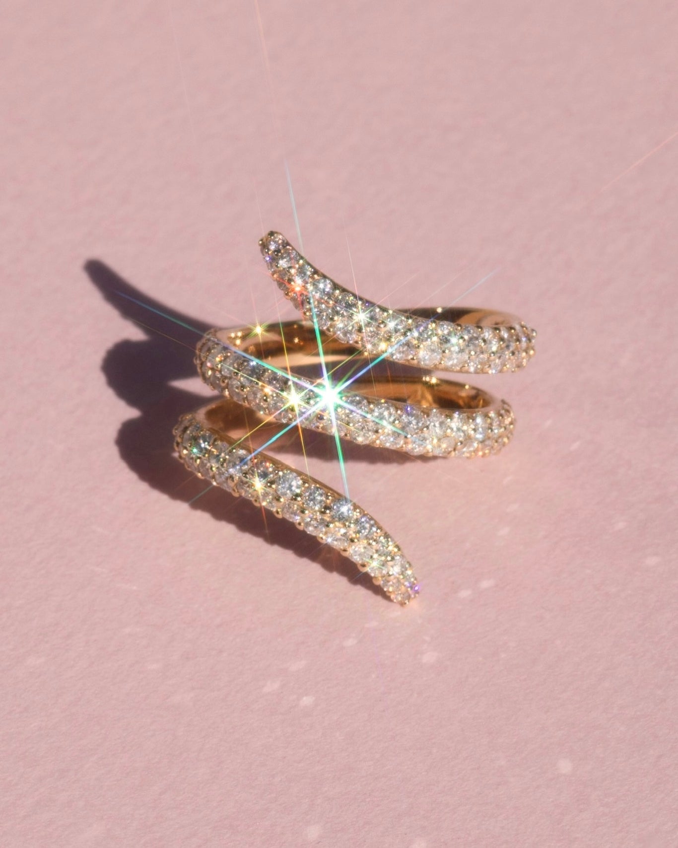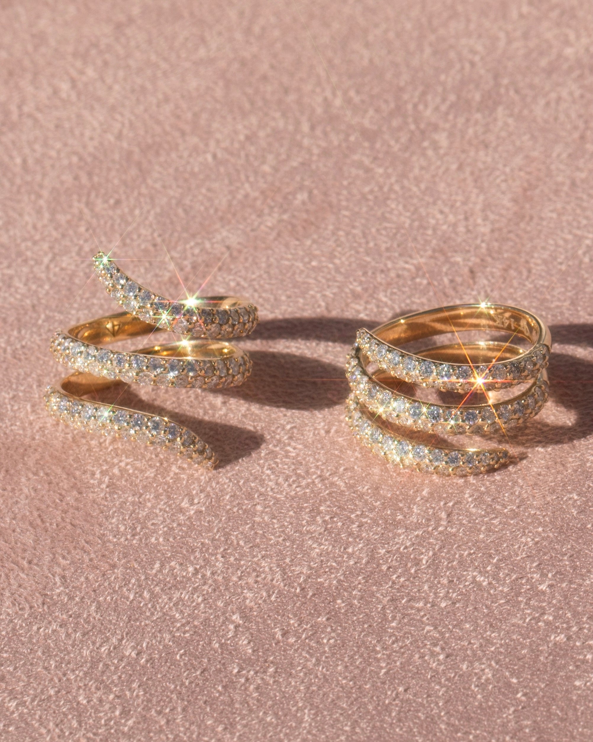 An elevated version of our Viper Ring, swirling around your finger. A carat and a half of diamonds for the ultimate sparkle.